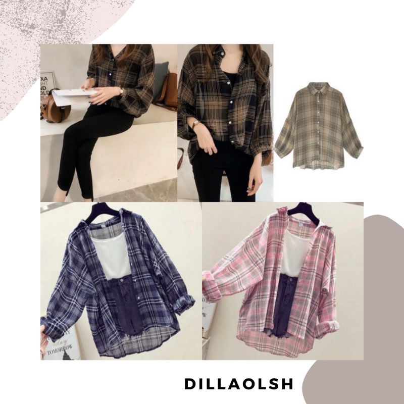 Alasan kenapa harus beli KARIN BLOUSE/atasan terbaru/kotak kotak/pakaian warna/blouse lucu/L sekarang