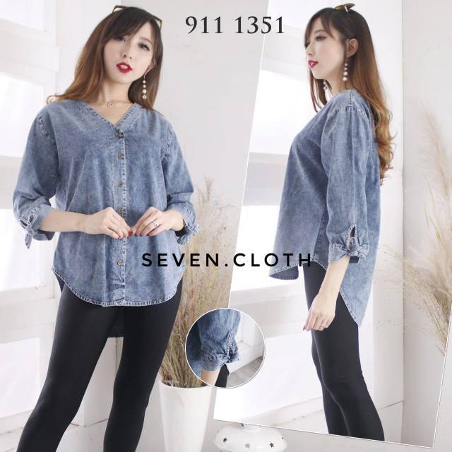 Seven.cloth blouse atasan denim neck v trendy