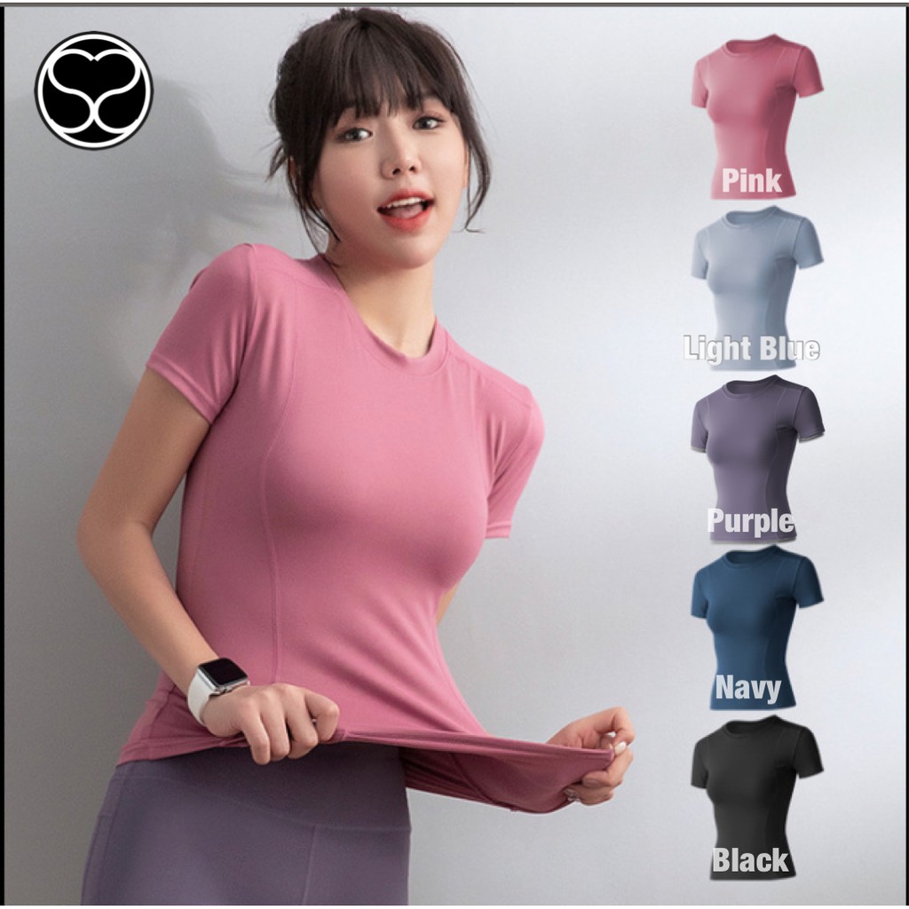 SecondShape - T-Shirt Baju Atasan Olahraga Wanita Tangan Pendek Yoga Senam Gym Fitness Training